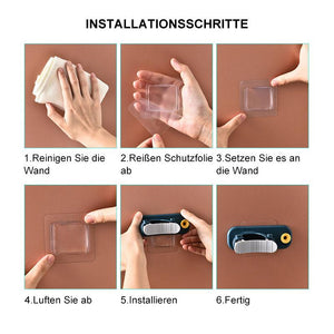 Einfache Installation ohne Stanzen - Auf der Rückseite des Besengreifers befindet sich ein starker Klebstoff, ohne dass Löcher für die Installation gebohrt werden müssen. Reinigen Sie vor dem Gebrauch die Wandoberfläche, kleben Sie den Mopphalter fest, drücken Sie 10 Sekunden lang, um die Luft herauszudrücken, und Sie können verwenden der starke und haltbare Halter nach 24 Stunden.