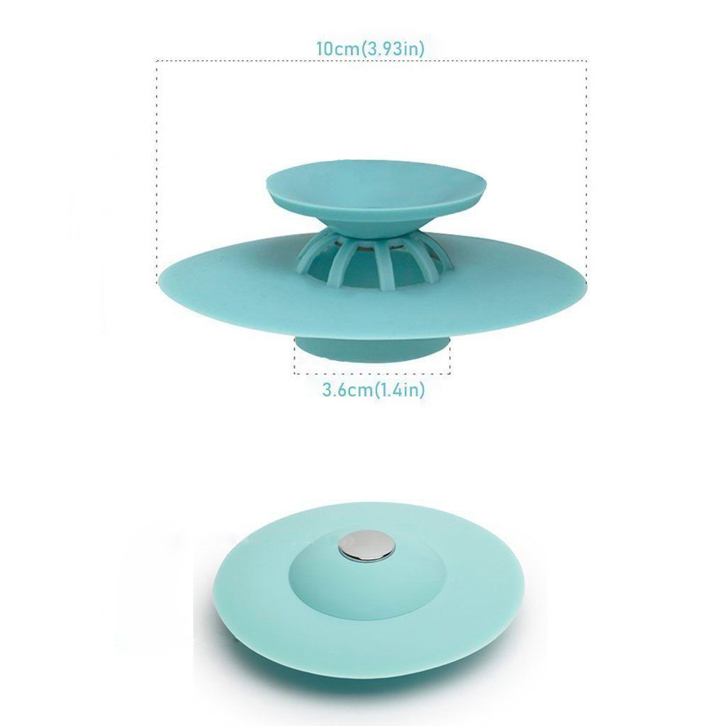 MEHRZWECK ABLAUFSTÖPSEL: Es dient sowohl als Abfluss Stöpsel als auch als Haarsieb; drücken Sie den Mittelteil mit dem silbernen Knopf herunter, um das Ventil zu verschließen und Wasserablauf zu stoppen; um das Ventil für Wasserablauf zu öffnen und das Haarsieb zu aktivieren, drücken Sie den silbernen Knopf in der Mitte