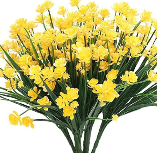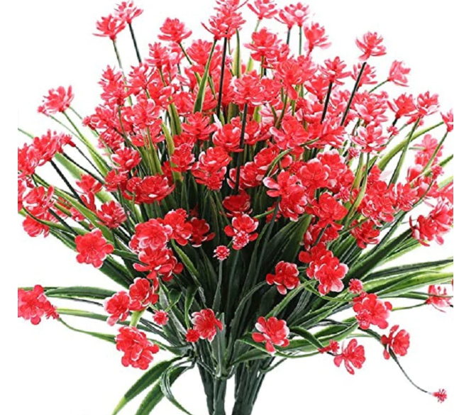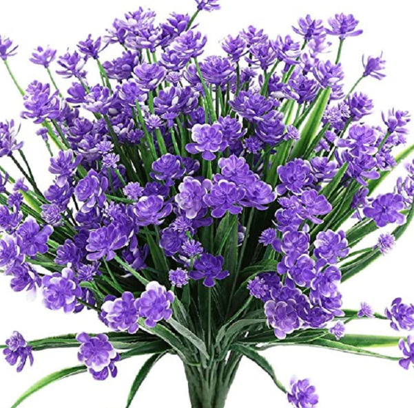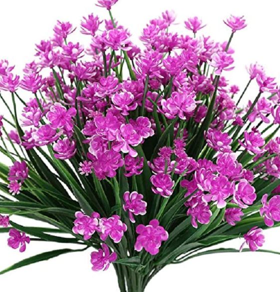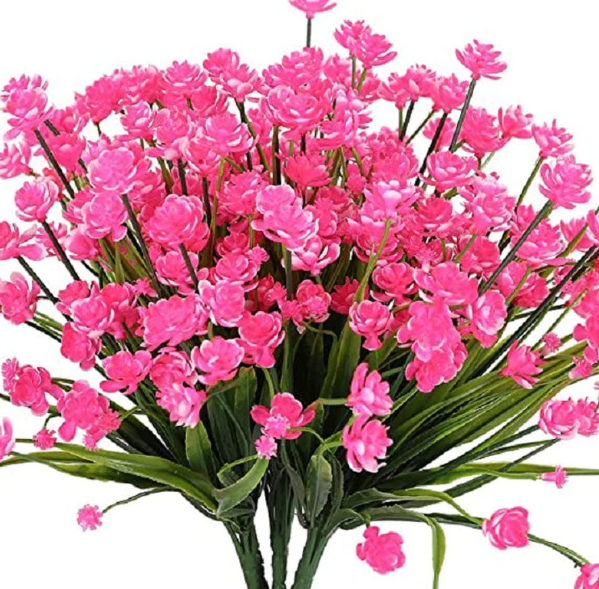 🌸 Volle Größe und hohe Qualität - Künstliche Blumen für den Außenbereich, 16.5 cm x 37 cm, jeder Busch hat 7 flexible Stiele und großzügige Blätter.