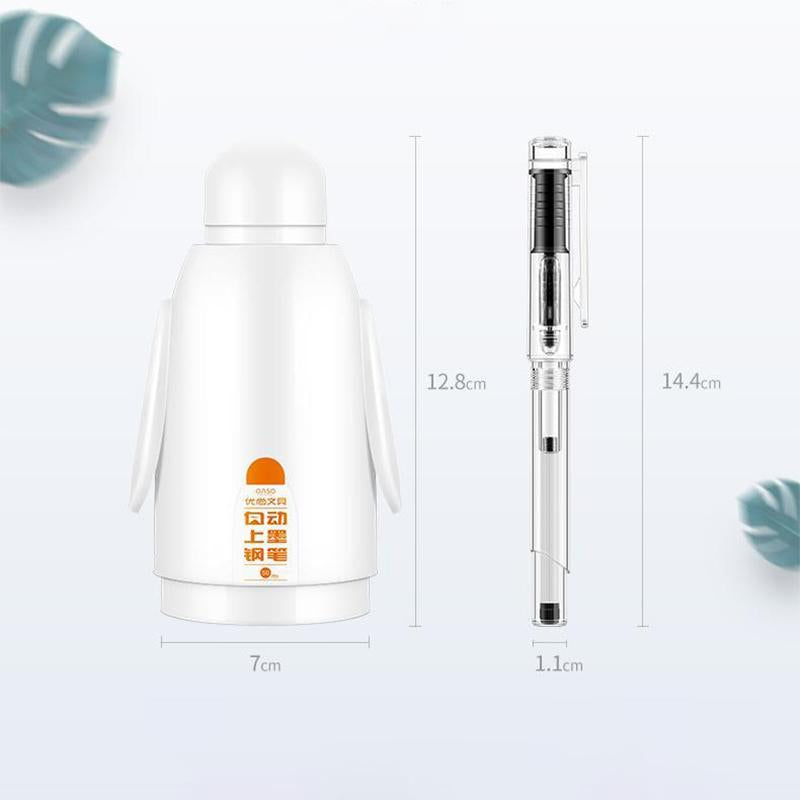 Modernes Design: Das Aussehen ist super süß. Die Tintenflasche wird zu einem fetten und entzückenden Cartoon-Bild verarbeitet, an dem Kinder interessiert sind. Sie werden Spaß haben und es lieben, mit unserem automatischen Tintenstift zu schreiben und zu lernen.