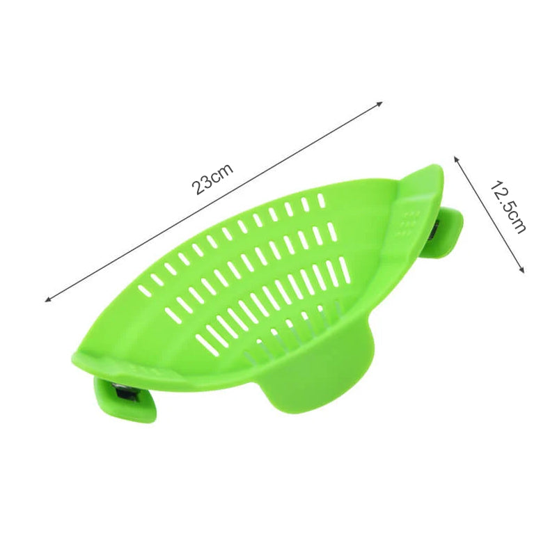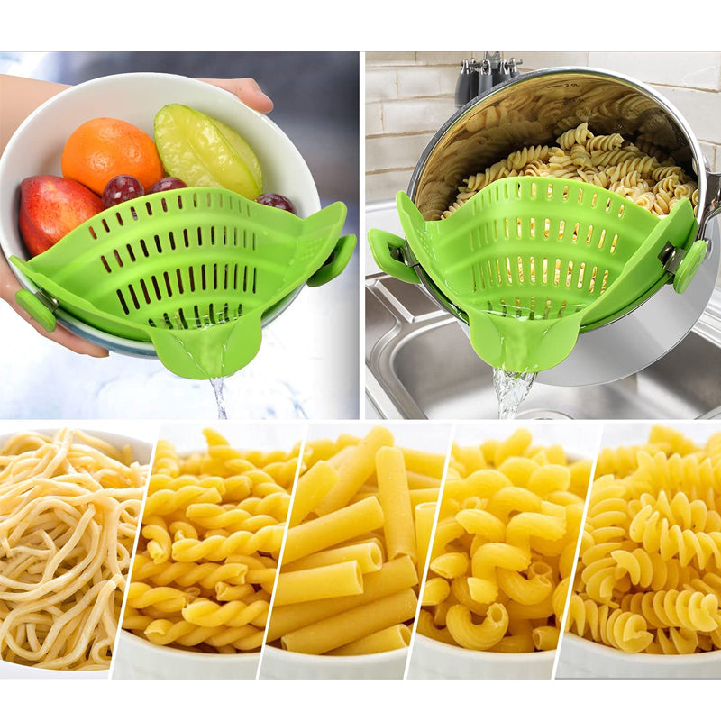 Innovativ: Entworfener Ausguss, um überschüssiges Wasser zu entfernen. Schnappen Sie Töpfe, Pfannen und Schüsseln in fast jeder Größe, groß und klein. Einfache Befestigung mit zwei Clips.
