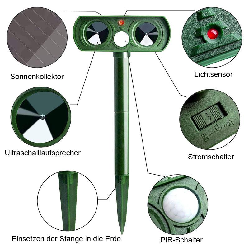 Paket: 1* Solar Ultraschall Tierschutzgerät und 1* Handbuch