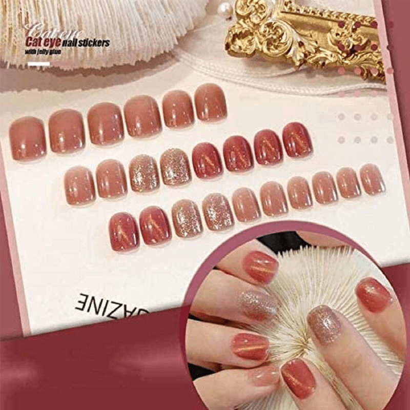 - 1 Satz × Geheimnisvolle tragbare Maniküre mit Katzenauge (24 Stück)
