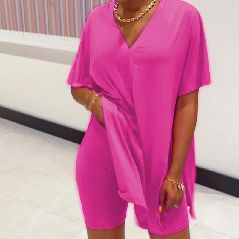 • Material: Dieses Top- und Short-Set mit V-Ausschnitt und Ärmeln besteht aus Polyester. elastisch , hautfreundlich und bequem, auch für den Sommersport. Der zweiteilige Outfits-Overall ist weich, dehnbar, einfarbig und auch sexy.