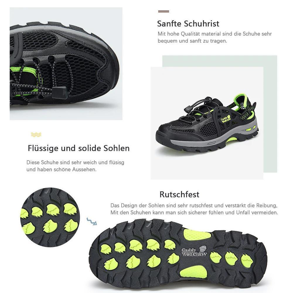 - Schnell trocknen: Die Schuhe können sich sehr schnell trocknen und sehr praktisch. Man kann die Schuhe waschen und bald benutzen.