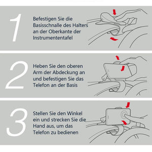 - Die direkte Sicht auf den Autotelefonhalter hat keinen Einfluss auf die Sichtlinie des Fahrers. Mobiltelefonanrufe sind freihändig, leicht zu erfassen, sicher und bequem.