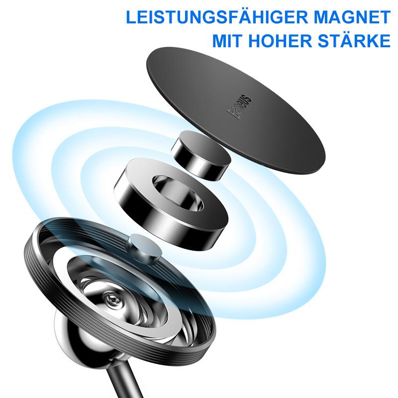 LEISTUNGSFÄHIGER MAGNET MIT HOHER STÄRKE - Der Magnet und das Silikonzentrum sorgen in Kombination mit dem Halter für einen starken Halt und ein gleichmäßiges Gleiten, um eine sichere Verwendung auch auf holprigen Straßen zu gewährleisten.