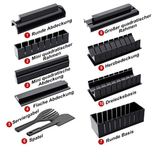 Machen Sie sich bereit, Ihren Gaumen mit Sushi zu begeistern, der erstaunlichen japanischen Küche, die die Welt begeistert hat und für Anfänger konzipiert wurde. Mit diesem Hersteller können Sie Ihr Verlangen nach Sushi stillen und gleichzeitig mit neuen Zubereitungstechniken in der Küche experimentieren. Alle Werkzeuge, die Sie benötigen, um ganz einfach Ihr eigenes Sushi im japanischen Stil zu Hause zuzubereiten!