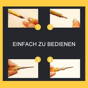 Mit diesem Schraubendreher-Set können Sie die Abdeckung von Mobiltelefonen einfach und ohne Beschädigung der Telefonabdeckung öffnen.Die ausgefallenen, rutschfesten Streifen auf Grifffläche und Drehabdeckung machen die Bedienung komfortabel und verbessern die Arbeitseffizienz.