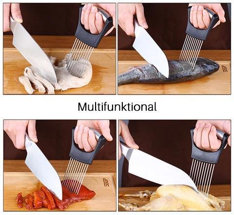 • 10 Zinken: Die 10 Zinken sind für eine Vielzahl von Schnitten in Tomaten, Zwiebeln, Karotten, Rüben, Kartoffeln und jeder Art von Fleisch oder Gemüse ausgelegt. Einfach zu bedienen, zu lagern und zu reinigen.