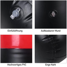 Einfach zu bedienen: Sie können die Sandsäcke aufheben und sich in wenigen Minuten auf das Aufblasen vorbereiten. Der Sandsack ist in zwei Teile geteilt. Es ist sehr einfach, zuerst Wasser oder Sand auf der Basis zu montieren und dann den Stanzkörper aufzublasen, da er sonst nicht effektiv zurückprallt.