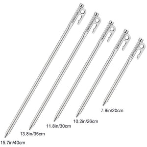 Hervorragende Haltbarkeit: Hochfester Edelstahl wird für Haltbarkeit und Robustheit verwendet, so dass die Zeltheringe viele Male wiederverwendet werden kann.