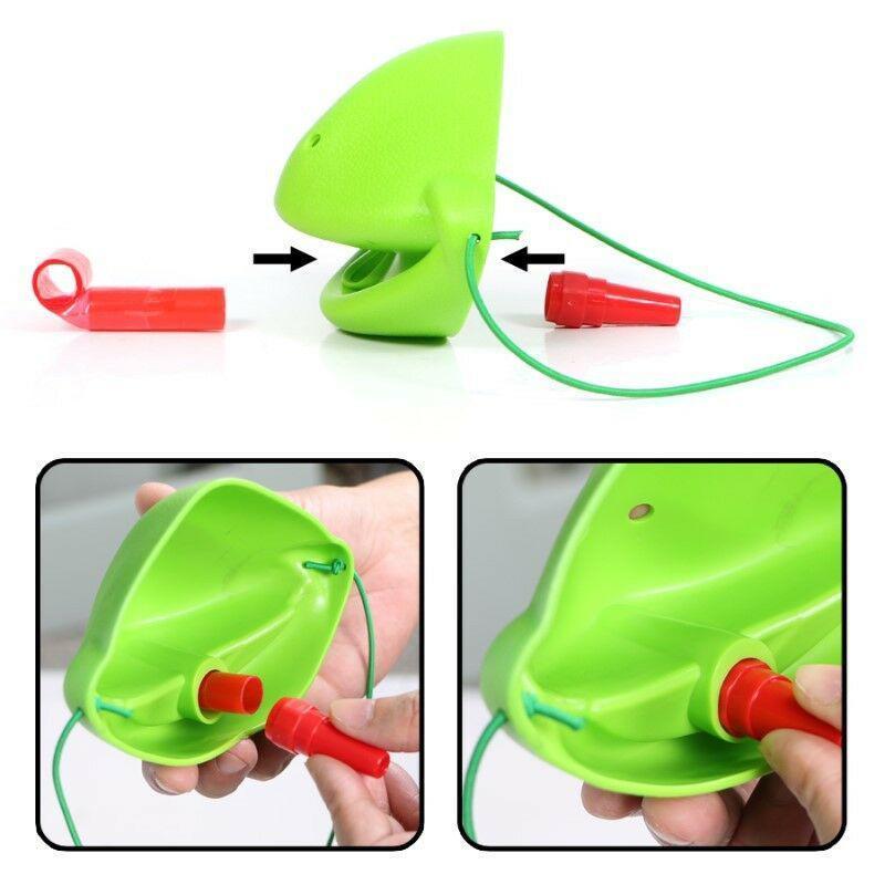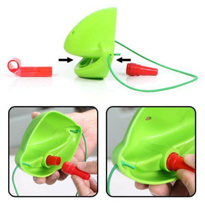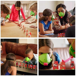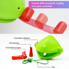 Beide Spieler dieses unterhaltsamen Spiels tragen ChamĂ€leon-Mundmasken mit verlĂ€ngerten roten Zungen.Â