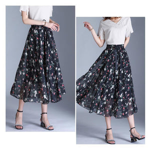 1 x Damen Langer Rock mit bedruckten Blumen