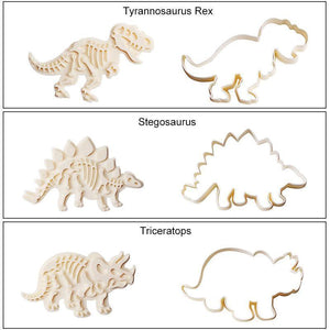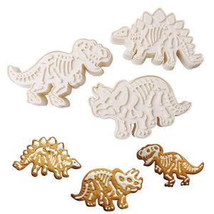 👩🍳 Mit unserer Dino-Ausstechform können Sie lustige Kekse in Dinosaurierform erstellen. Das Set wird mit 3 Ausstechformen und 3 Stempel geliefert, um Knochen zu erstellen! Füllen Sie die Kerbe mit Zuckerguss oder geschmolzenen weißen Schokolade, damit die Dinosaurierskelette fertigen!