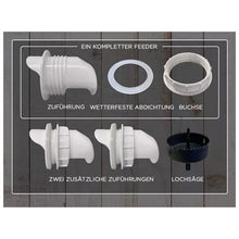 Es ist keine zusätzliche Hardware erforderlich. Dieser Geflügelfutterautomat ist bereits mit einer 8-cm-Lochsäge ausgestattet, und Sie können in wenigen Minuten einen Dreifach-Futterautomaten installieren.