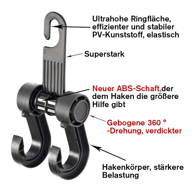 - Mit den Kopfstützenhaken müssen Sie sich keine Sorgen um den begrenzten Platz in Ihrem Auto machen!