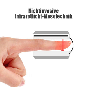 Sie können jetzt SpO2 und Pulsfrequenz in der Privatsphäre Ihres eigenen Zuhauses messen, indem Sie Ihren Finger in das Fingerpulsoximeter stecken.