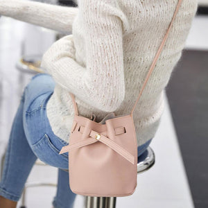 Dies ist die einfarbige Umhängetasche mit Zugschnalle und Gürtelverzierung.