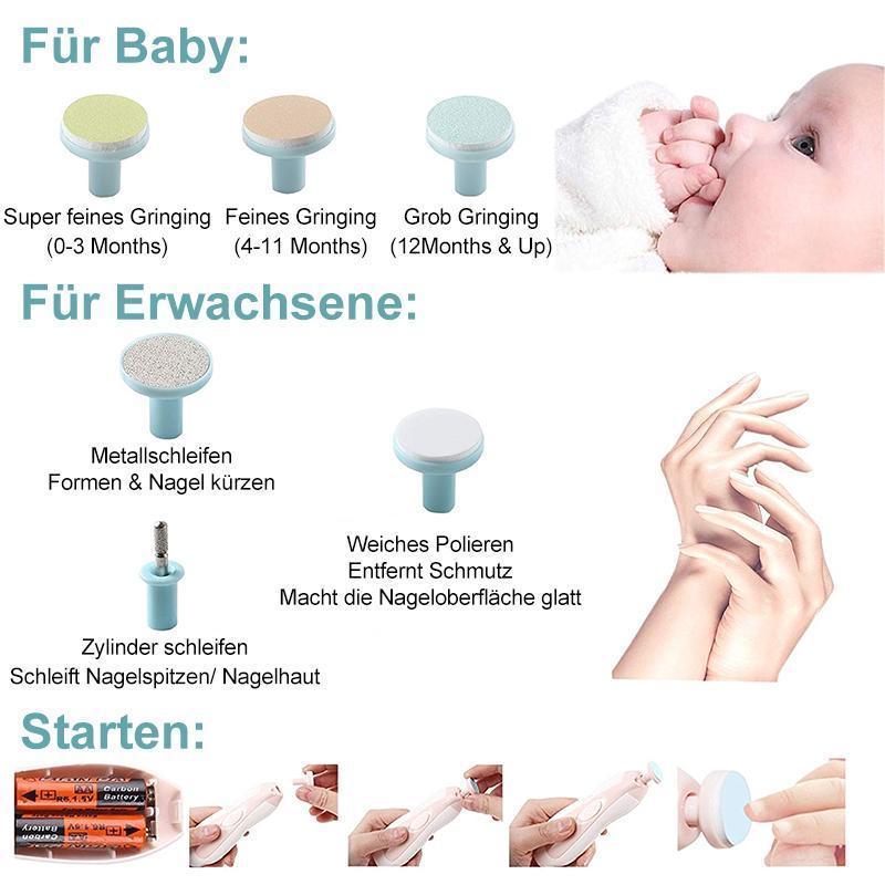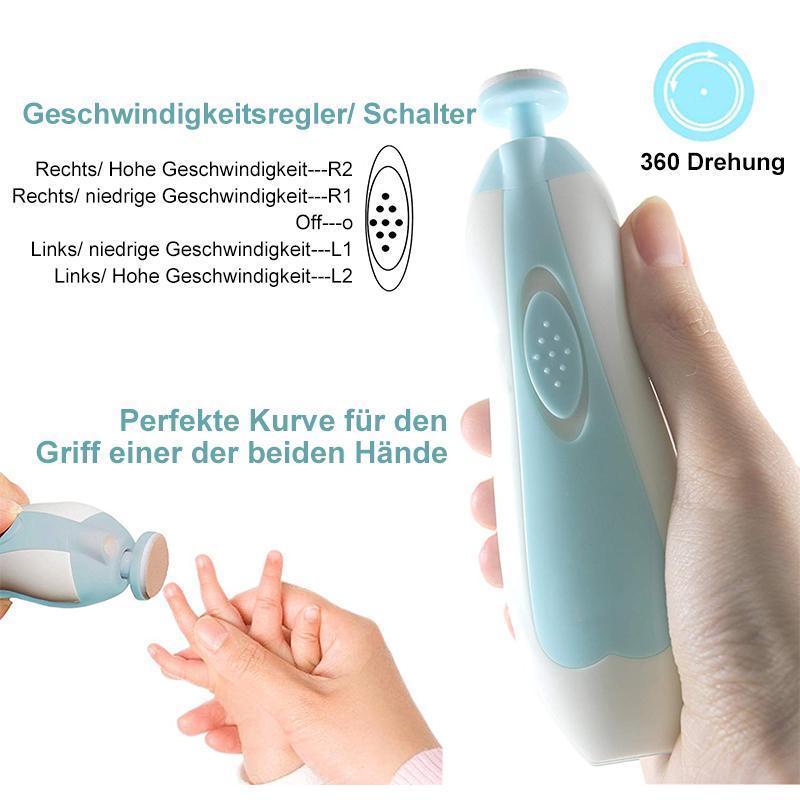 Das Schneiden der Nägel Ihres Babys kann eine Herausforderung sein. Es braucht Geduld, Zeit und Liebe zum Detail. Der elektrische Nagelschleifer für Baby macht es einfacher, indem er die spitzen Kanten glättet.