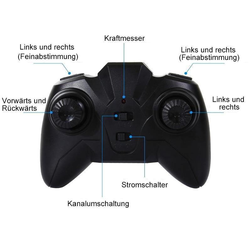- Kommt mit der Infrarot Fernbedienung zur Steuerung der Laufgeschwindigkeiten und -richtungen.