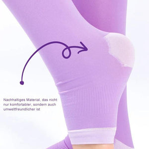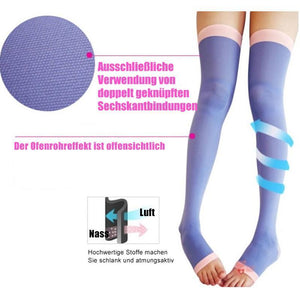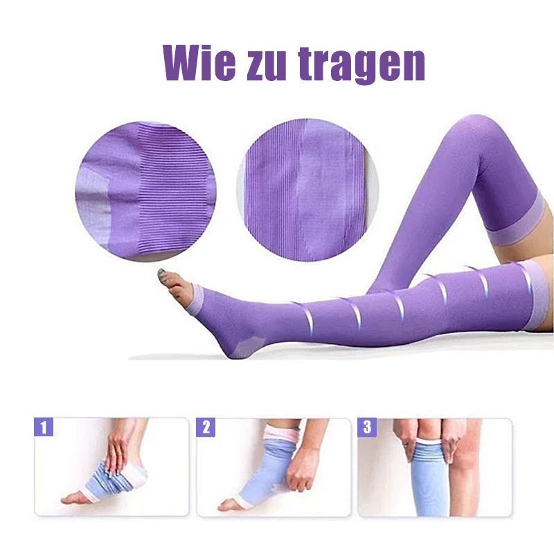 - Diese Strümpfe fördern die Durchblutung und Lymphzirkulation und reduzieren Schwellungen und Muskelermüdung. Es lindert und beugt Krampfadersymptomen, müden und schmerzenden Beinen vor.