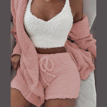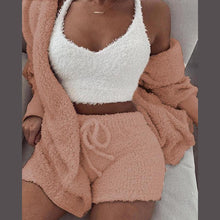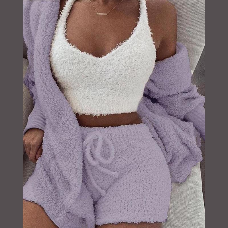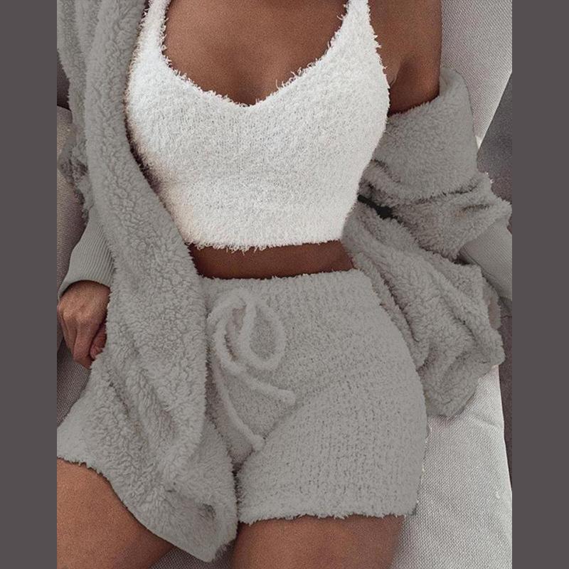 1* Flauschiger Kapuzenmantel mit kurzer Hose und Leibchen