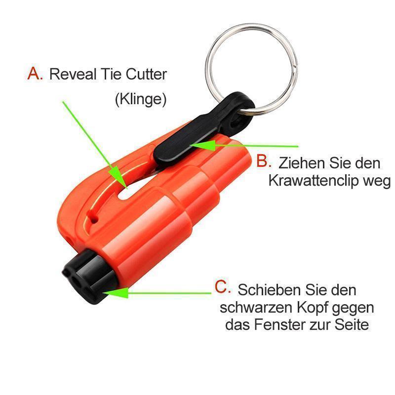 - 2 in 1 Rettungsgerät. (Sicherheitsgurt Cuter & Seitenfenster Hammer)