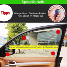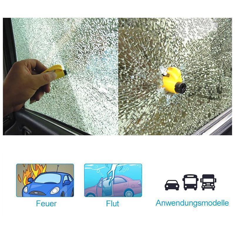 - Um das Fenster zu zerbrechen: In Notfällen können Sie das Car Kit verwenden, um das Fenster zu brechen, die Kappe abzunehmen und den Abzug des Schlagbolzens gegen das Fenster zu drücken.