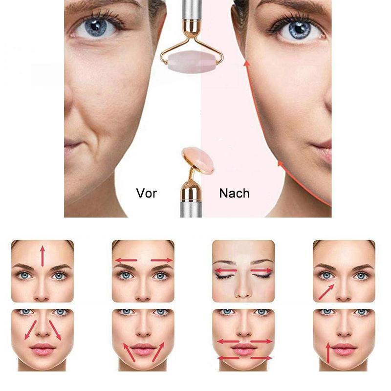 2-IN-1-FUNKTION: Unser Gesichtsmassageset enthält 2 echte Rosenquarz-Aufsatzköpfe - einen Gesichtsroller und eine Augenpresse. Die nächste Generation des Gesichtsrollens kombiniert eine kontrollierte Vibrationstechnologie mit echtem Rosenquarzstein, um Ihnen einen perfekten, glatten Hauteffekt zu verleihen. Unter Augenpressung werden geschwollene Augen und Augenringe gemildert. Kühlen Sie die Augenpresse vor der Verwendung, um die Leistung und die Reduzierung von Schwellungen unter dem Augenli