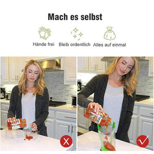 - Hochwertiges Material: Rutschfeste Gummibasis, um sicherzustellen, dass Lebensmittel ohne Verschütten in den Beutel gelangen.