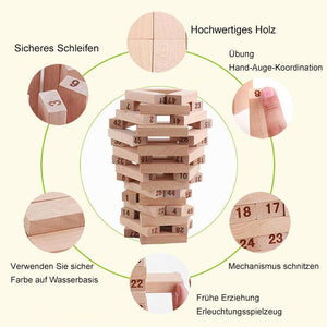 - 【GUTE PARTYSPIELE】Würfeln Sie und ziehen Sie einen Block derselben Farbe von der Unterseite und positionieren Sie ihn nach oben. Gewinnen Sie, indem Sie der letzte Spieler sind, der einen Block entfernt, ohne dass der Stapel abstürzt!