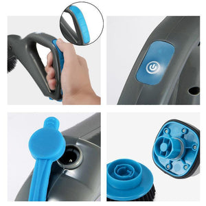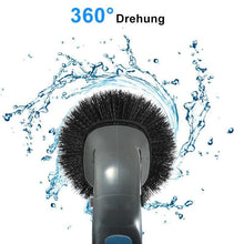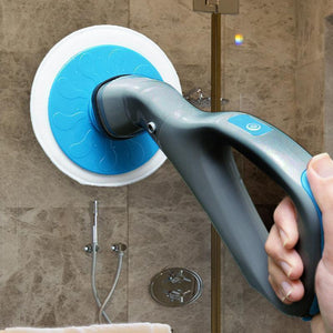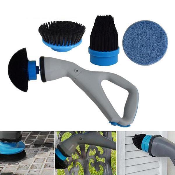 - Beginnen Sie mit der Verwendung: Sobald der Muskel Wäscher vollständig aufgeladen ist, kann er eingeschaltet und verwendet werden. Wählen Sie je nach den Außenflächen oder Möbeln, auf denen der Wäscher verwendet werden soll, den entsprechenden Bürstenkopf und lassen Sie ihn einrasten. Schalten Sie den Wäscher ein, indem Sie die blaue Taste über dem Griff drücken. Der Bürstenkopf sollte anfangen zu vibrieren und sich zu drehen. Legen Sie den Bürstenkopf auf die Oberfläche, und Schmutz und Staub sollten abperlen.