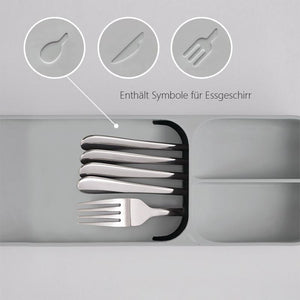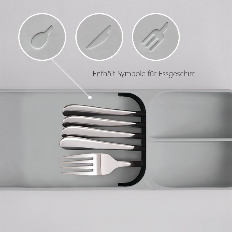 - Diese kompakte Essgeschirr- Aufbewahrungsbox ist eine neue und platzsparende Art, Ihr Essgeschirr aufzubewahren und Ihre Küchenschubladen zu ordnen.