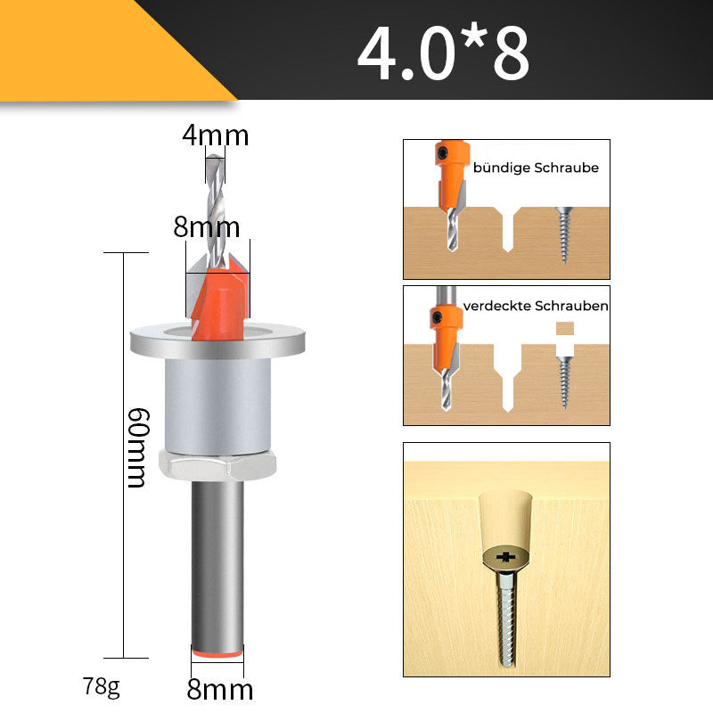 Bohren einer Vorbohrung und Versenken/Senken in einem Arbeitsgang.