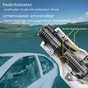Unter Wasser anwendbar: Das leichte und kleine Schlüsselanhänger-Design macht Saker zum Auto-Sicherheitswerkzeug, um Fenster auch unter Wasser mühelos zu zerbrechen, ohne Angst zu haben, durch Wasserdruck gestört zu werden, im Vergleich zu diesen herkömmlichen Sicherheitshämmern, die leicht aus einem untergetauchten Auto zu entkommen sind.