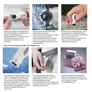 Sicherheitsgurtschneider: Ein Sicherheitsgurtschneider mit einer scharfen Edelstahlklinge ermöglicht es Ihnen, den Autosicherheitsgurt schnell zu schneiden, ziehen Sie einfach den Ringzug horizontal, um die Schutzabdeckung im Notfall herauszunehmen.