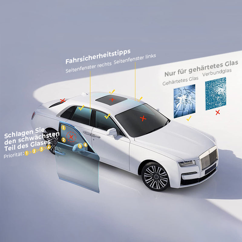 Leistungsstarker Wolframstahl-Spike: Hohe Härte und robuster Wolframstahlkopf ermöglichen es Ihnen, 1 Sekunde zu brauchen, um das doppelschichtige Seitenfenster des Autos leicht zu zerbrechen, und gewährleisten eine längere Lebensdauer als der übliche Legierungskopf.