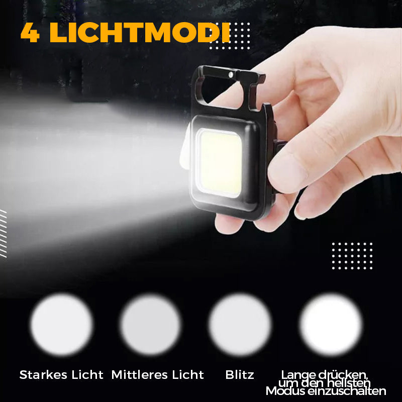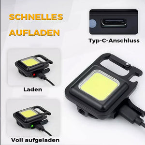 Diese Mini-Schlüsselbund-Taschenlampe verfügt über COB-Lampenperlen mit einer maximalen Leistung von 500 Lumen, ideal zum Wandern, Bergsteigen, für den täglichen Gebrauch, Arbeits- und Notbeleuchtung.