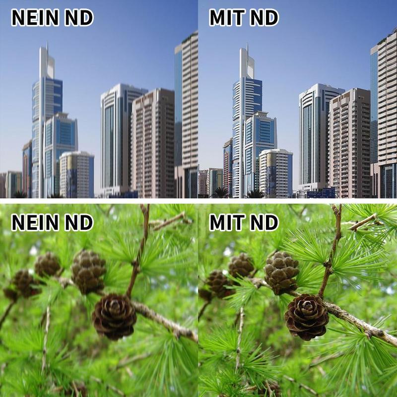 • ND-Linsenfilter verfügen über 18 Schichten Multi Resistance Coating (MRC), die Geisterbilder stark reduzieren. Reduziert die Lichtaufnahme, um zu helle und verwaschene Bilder zu vermeiden. Sie ermöglichen auch eine Reihe von kreativen Möglichkeiten; Ermöglichen einer größeren Apertur für ein geringeres Tiefenfeld.
