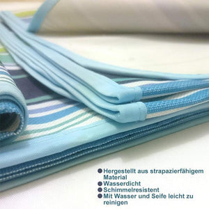 Wasserdicht und sandbeständig: Perfekt für Strandaktivitäten und Picknick. Sie können es sehr leicht reinigen, indem Sie Sand oder Schmutz auf der Oberfläche schütteln. Es ist einfacher, es mit Seife oder einem Handtuch zu waschen.
