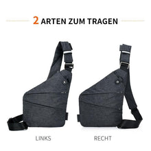 Wählen Sie die rechte Schulter, wenn Sie den Gurt an Ihrer rechten Schulter und die Tasche an Ihrer linken Seite haben möchten. (Empfohlen für Rechtshänder)