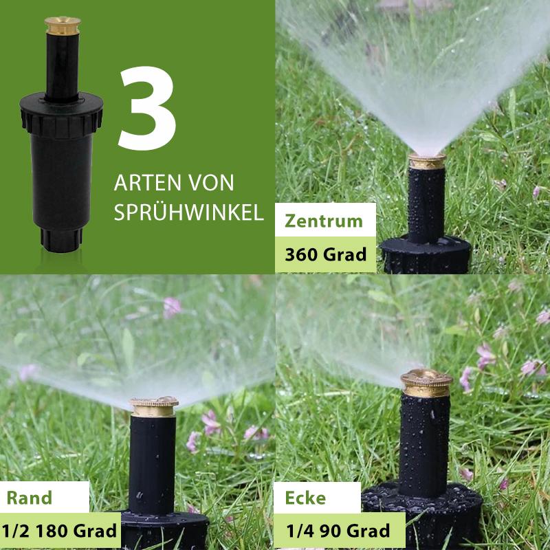 MEHR MODUS & LANGLEBIG: Optional sind 90/180 / 360-Grad-Sprühwinkel erhältlich. Ermöglicht es Ihnen, verschiedene Arten des Sprinklermodus für diesen Rasensprinkler auszuwählen, um Ihre verschiedenen Anforderungen an das Sprühen von Wasser zu erfüllen. Der Messing-Sprühkopf und der Innenfilter sind aus hochwertigem ABS gefertigt, um eine lange Lebensdauer zu gewährleisten. Sie verhindern ein Blockieren.