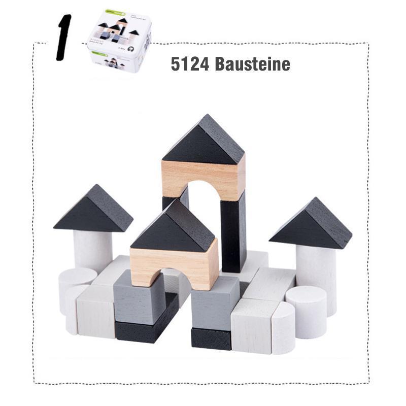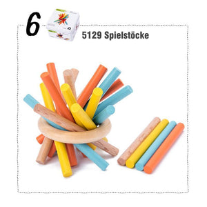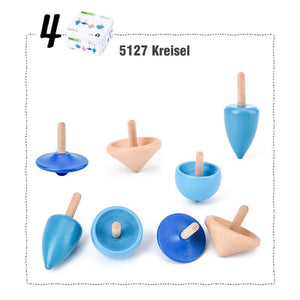- 8 verschiedene Holzspielzeuge zur Auswahl: Spielstock, Zauberwürfel, Bausteine, Domino, Puzzle, Kreisel, Tangram, Überlagerungsspiel.