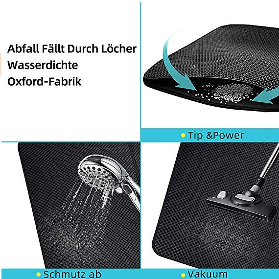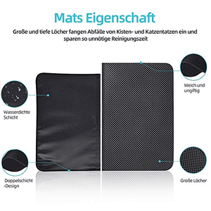 - Effizientes Loch Design: Unser Katzenklo Vorleger Adopt Doppelschicht Parallelogramm Loch, hilft Ihnen würfe auf der oberen schicht zu sammeln. Und der strukturierter Oberfläche werden die Abfallkörnchen von den Pfoten leicht abgefangen. Sie fallen zur zweiten Schicht durch, anstatt auf den Boden geschoben zu werden. Man kann es leicht wieder auskippen.