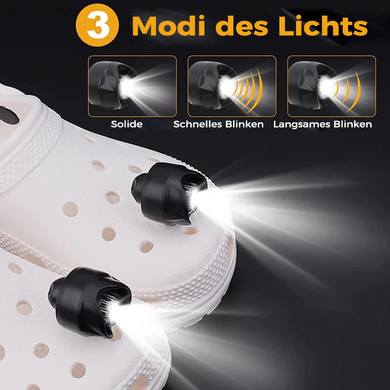 Mini-Fußlicht. Diese kleinen und handlichen Lichter lassen sich leicht an Ihren Schuhen befestigen, damit Sie nachts sehen und gesehen werden können.