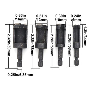 Paket: 1* Sechskantschaft Holzbearbeitung Zapfenstecker Bohrer Set (4 Stück)