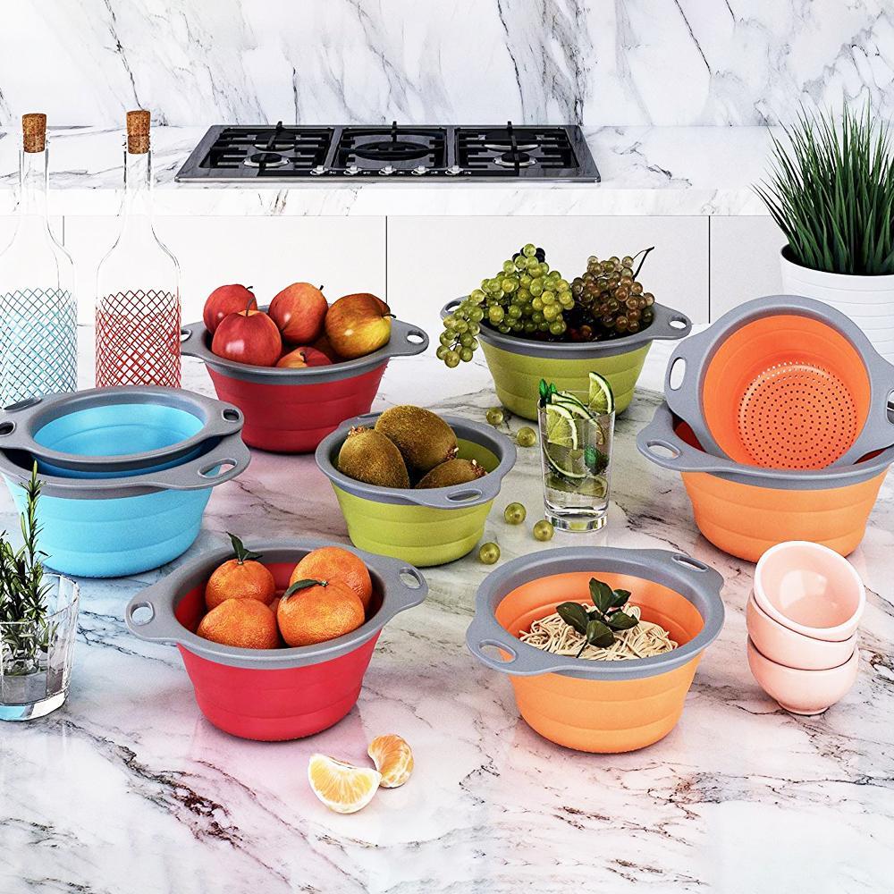 Material herstellen: Der Abtropfkorb besteht aus hochwertigem Silikonmaterial, das sicher und ungiftig, geruchlos und gesund ist, leicht zu reinigen ist, wiederverwendbar und langlebig ist.