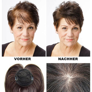 Es ist ein Haarteil, keine volle Perücke, niemand wird merken, dass Sie etwas tragen. Perfekte Lösung, um dünnes Haar, graues Haar, Haarausfall zu verbergen.