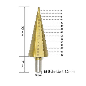 - 4-20 mm - 4, 6, 8, 10, 12, 14, 16, 18, 20 mm (9-stufiger Bohrer)